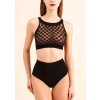 Dámsky priehľadný top Beth zdobený šachovnicovým vzorom a zakončený širokou čiernou stuhou. Vďaka mäkkej, priehľadnej tkanine príjemnej na telo pôsobí top prirodzene a poskytuje pohodlie bez obmedzenia pohybu. Elastické priadze použité v elastickej kockovanej bralette sú vďaka jemnej, hustej štruktúre veľmi jemné a zamatové na dotyk a zároveň robia top odolnejšie voči obláčikom. Šitie plochým švom robí zvršok pod odevom nenápadným. Ľahká podprsenka bralette vďaka priedušnej tkanine umožní vašej pokožke dýchať a minimalizuje riziko odrenín. Braletka je vyrobená z pružnej priehľadnej látky a šitá tenkým plochým švom na boku. Braletka Beth je zaujímavý módny doplnok ktorý kombinuje kvality sexy spodnej bielizne, športovej podprsenky a efektívneho topu.Dodatočné parametre