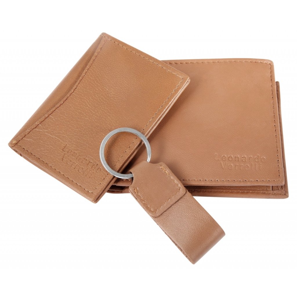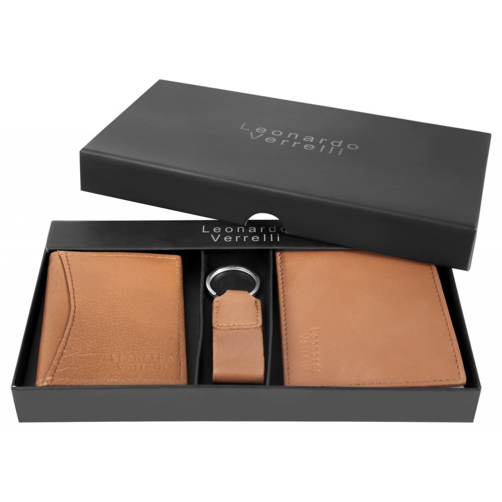 Darčeková sada Leonardo Verrelli s peňaženkou, kľúčenkou a puzdrom na kreditné karty hnedá