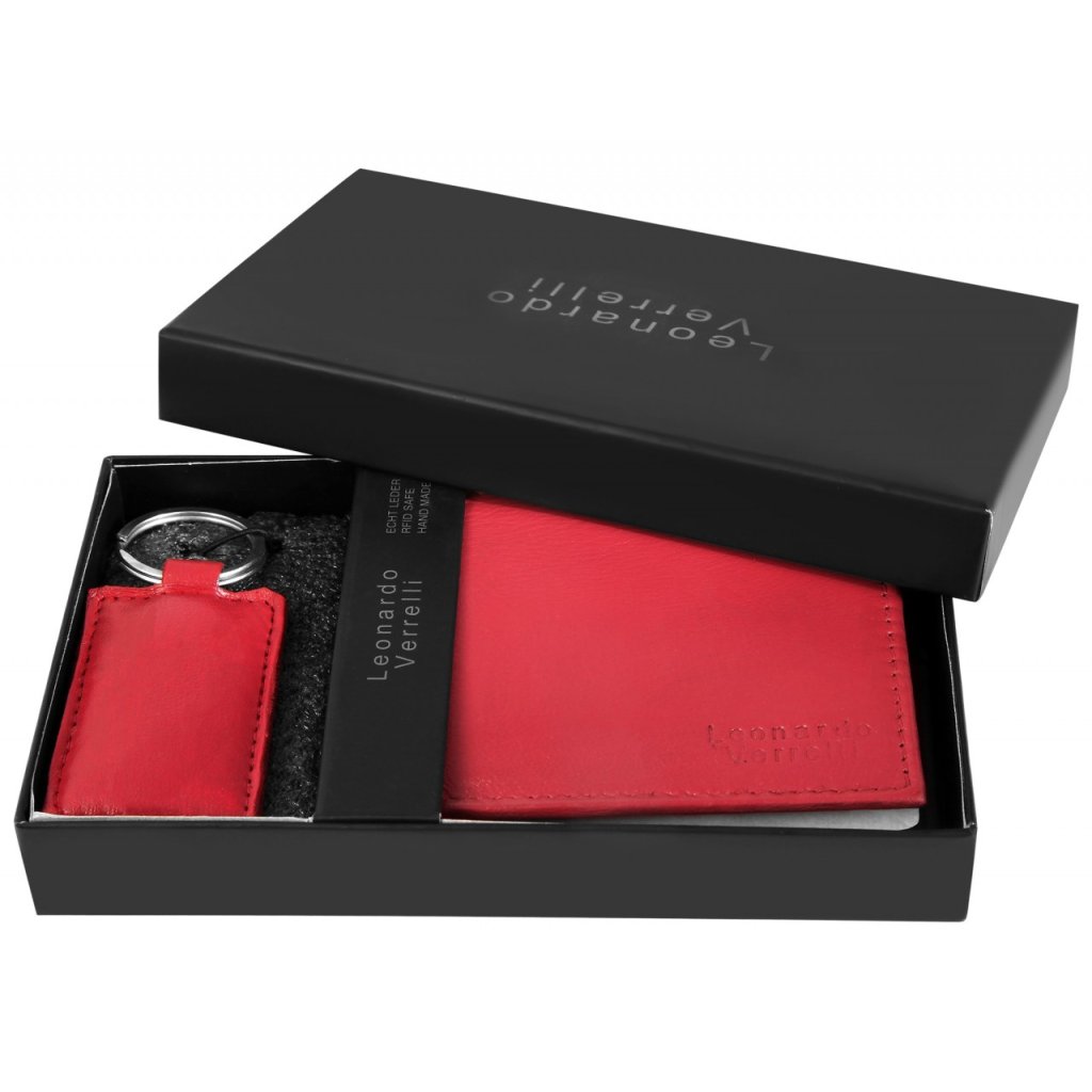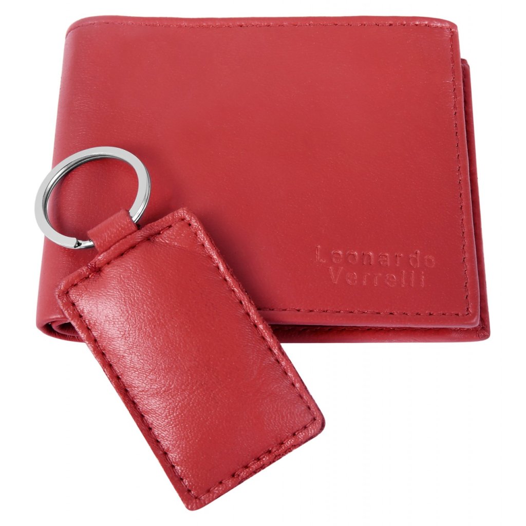 Darčeková sada Leonardo Verrelli s peňaženkou a kľúčenkou z pravej kože bordó