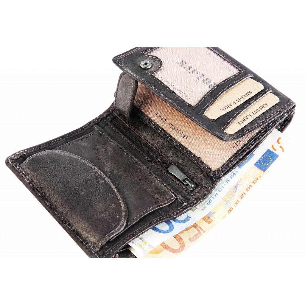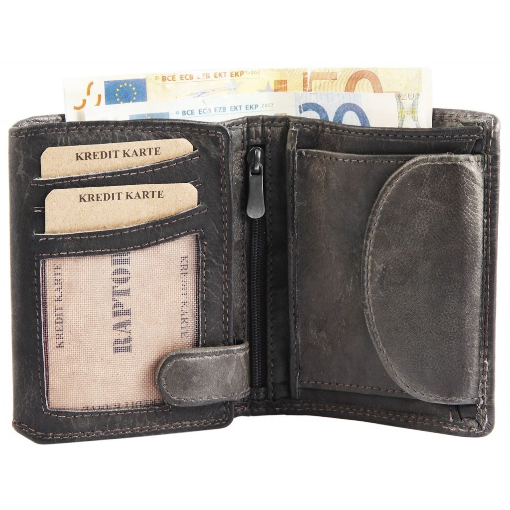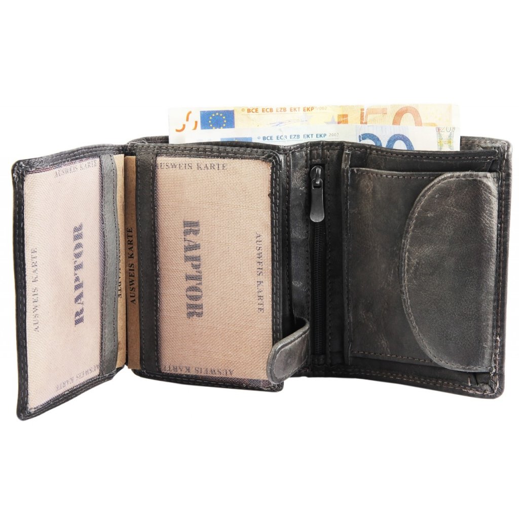 Luxusná pánska peňaženka Raptor v prevedení na výšku, vintage s pationou. Peňaženka má v zaklapnutom stave výšku 11 cm a šírku 9 cm. Vnútorné vrecko na zips. Dve priehradky na zips a jednu priehradku na mince na patentku. Oddiel na doklady a karty je zaistený klipom s cvokom. Celkovo sa jedná o krásne spracovanú peňaženku z pravej hovädzej kože. Dvojité prešitie a kvalitný prírodný materiál zaisťujú, že dlho vydržia. Navyše ponúka dve priehľadné priehradky na doklady, tie tak sú hneď k dispozícii keď ich potrebujete.Buďte prvý, kto napíše príspevok k tejto položke.